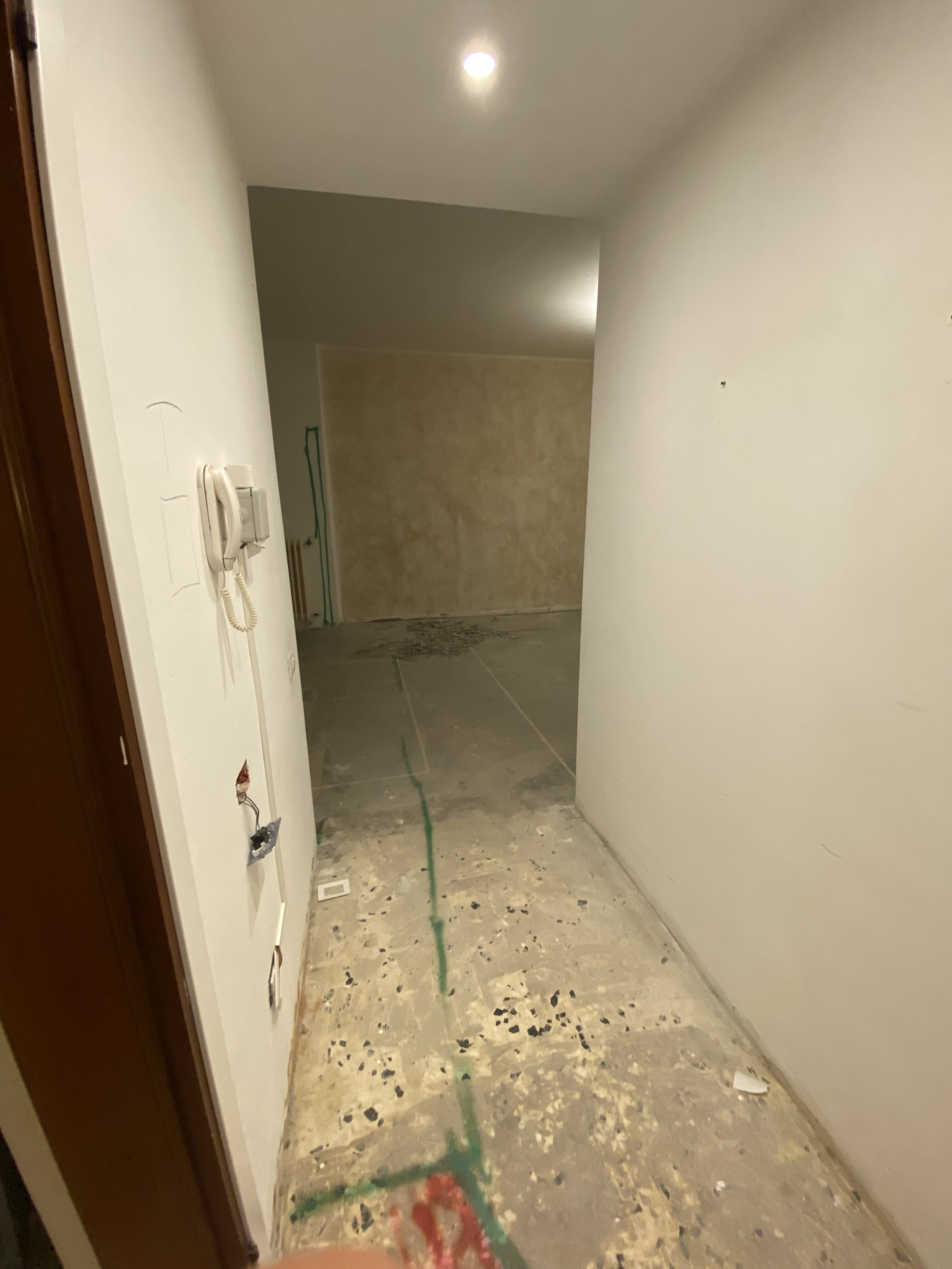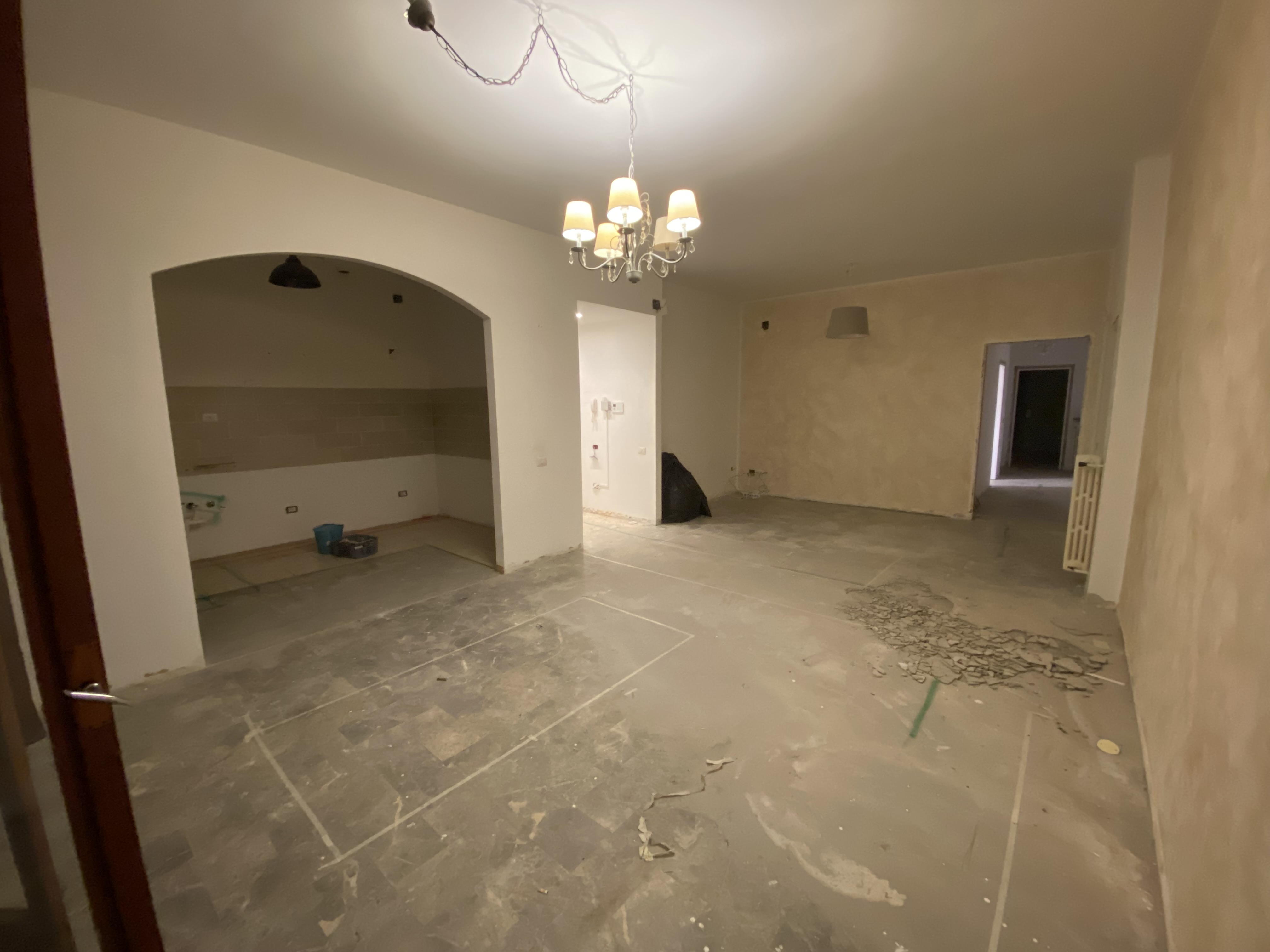 La fase di lavorazione ha previsto la demolizione delle finiture esistenti e il rifacimento completo degli impianti elettrici e idrici. Sono stati tracciati nuovi percorsi per ottimizzare la disposizione degli ambienti e rendere ogni spazio più pratico e coerente. Parallelamente, sono stati eseguiti interventi murari e predisposizioni tecniche per garantire una casa moderna, efficiente e pronta ad accogliere nuove soluzioni abitative. Ogni scelta è stata guidata da un progetto preciso, studiato nei minimi dettagli.